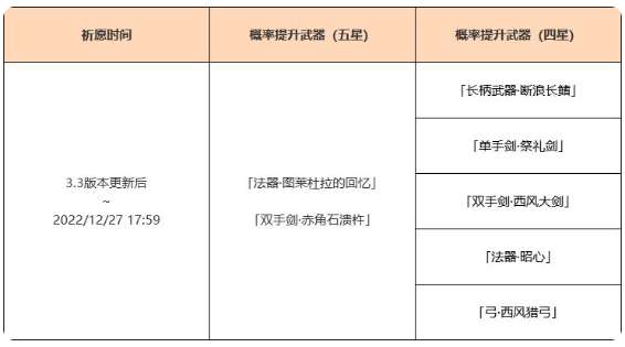 ●活动期间,限定五星武器「法器·图莱杜拉的回忆」「双手剑·赤角石溃杵」的祈愿获取概率将大幅提升!