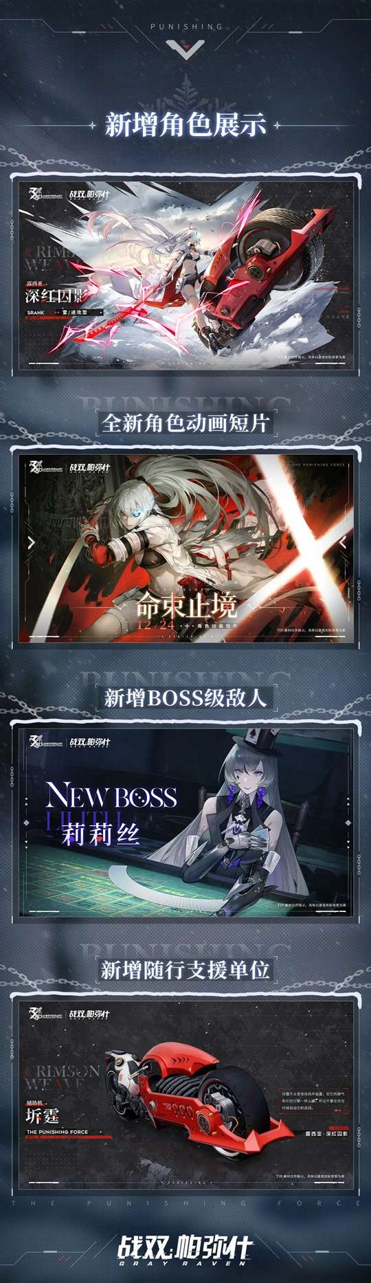 - 新版本「凛桎鸣渊」PV 与 归途伴风雪直播回顾视频 可以前往官方公众号“战双帕弥什”观看~