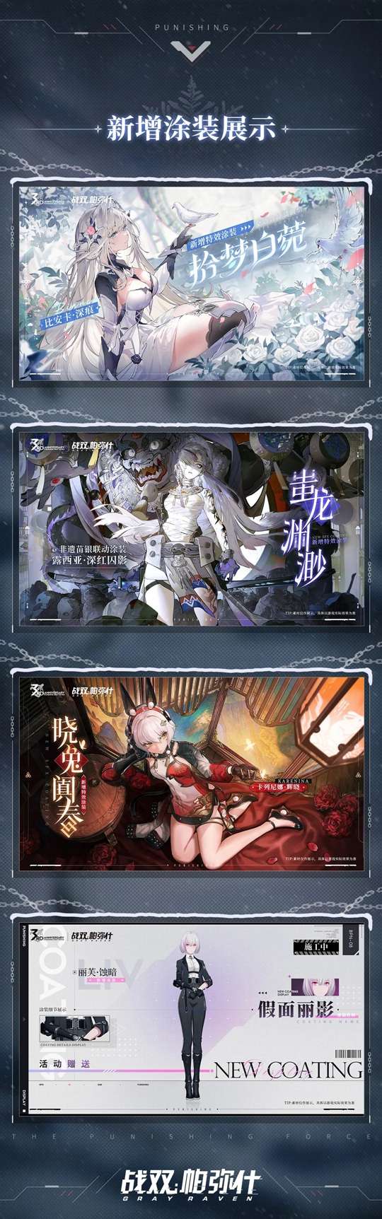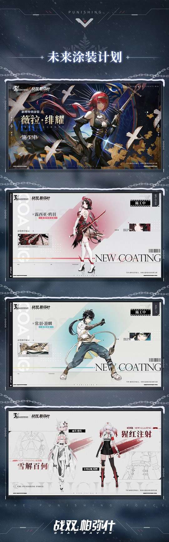 有关「凛桎鸣渊」版本新增角色涂装/活动福利和未来规划等情报,水母已经帮大家整理好了,点击下方图片,即可查看详细内容~