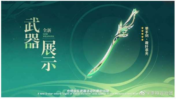 新武器全新的绿剑,海哥的专武,不过估计没多少玩家感兴趣,毕竟二期卡池的武器池可是护摩+若水
