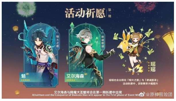 具体的卡池UP的情况,第一期是艾尔海森和魈,同时还有新四星瑶瑶的UP。