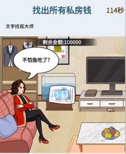 1、点击藏在鱼缸里的私房钱,桌子下面的私房钱。