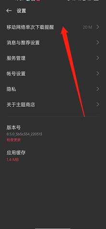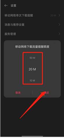 2、找到【移动网络单次下载提醒】,点击。