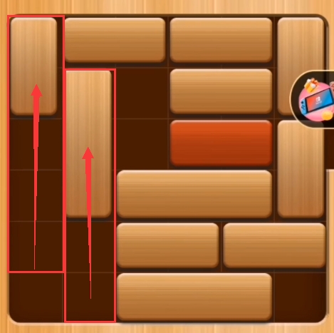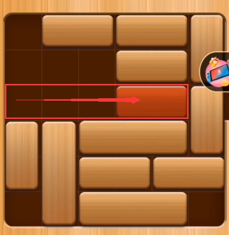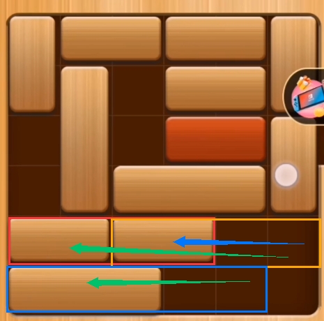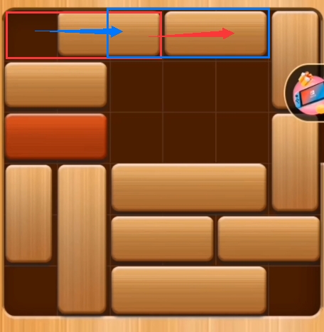 第一步:将第一排的两个横向的积木均往右推(如图:)