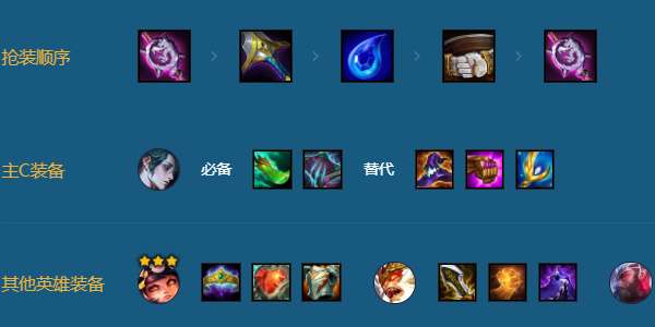 主C彗青龙鬼书法强装,安妮法系主T,战士装给乌迪尔其次猴子,多余法系装备给阿兹尔。