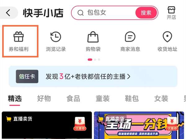 2、点击劵和福利。
