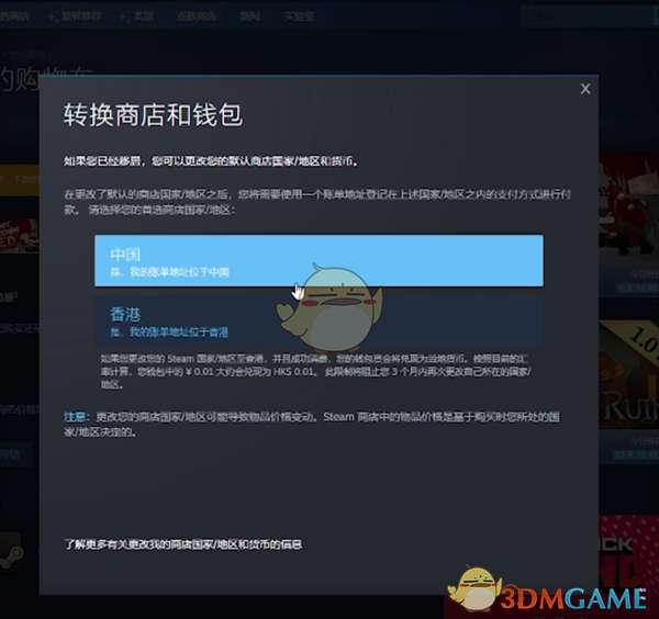 因为地区定位原因,不同地区在steam中进行支付的时候,系统出现的结算货币也是不一样的,如果有需要的话,用户可以对自己的地区进行修改,并重新切换货币支付方式,但是更改结算货币有一定的风险,下面小编就来为大家介绍一下具体的方法。