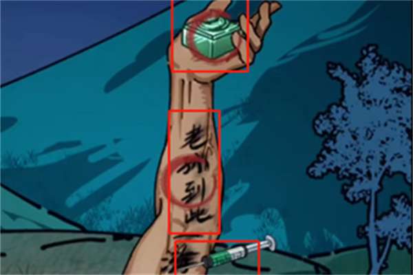 2、这个手臂上点击绿的方印、字再用地上的注射器抽他的血然后还是选择再想想。