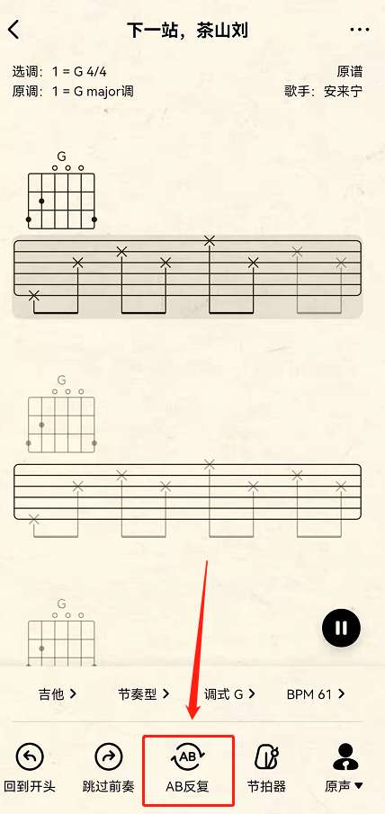 4、最后进入曲谱后在这选择ab反复即可开启模式。