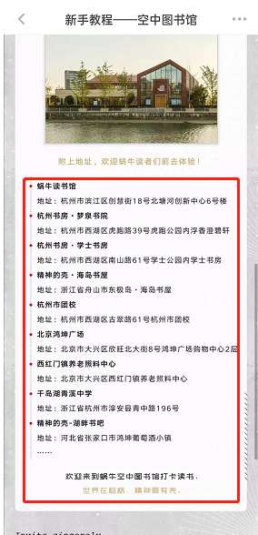 3、向下滑动,点击查看,就可以看到各种空中图书馆的地址了。