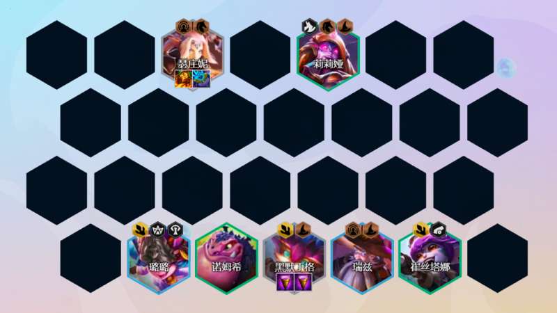 阵容组成:瑟庄妮、黑默丁格、崔丝塔娜、图奇、莉莉娅、璐璐、瑞兹、泰隆