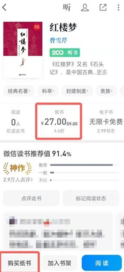 搜索之后,我们进入电子书的界面,然后就能看到购买纸书和纸书的价格。