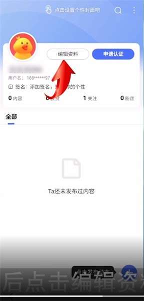 1、打开百度app,点击右下方我的,然后点击左上方的个人昵称,随后点击编辑资料;