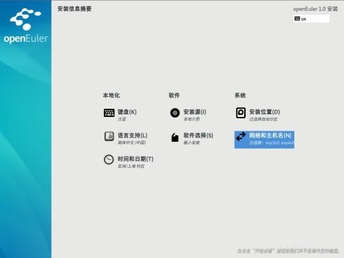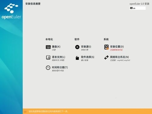 进入安装界面,可以进行时间、语言、安装源、网络、安装位置等相关设置。