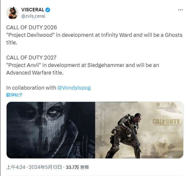 根据“泄露”,“Anvil”是一款基于《使命召唤:幽灵》的由 Infinity Ward 开发的游戏,而“Devilwood”则是《使命召唤:高级战争》的续作,将由 Sledgehammer 开发。Tom Henderson 表示,IW 负责 2026 年而 Sledgehammer 负责 2027 年作品确实是当前的计划,并且他认为猜到这个计划没什么难度(因为动视一直以来都是交替开发的)。他还确认,这些项目代号的名称完全是错误的,暗示自己已经知道实际的代号是什么了(但显然他目前还无法透露)。