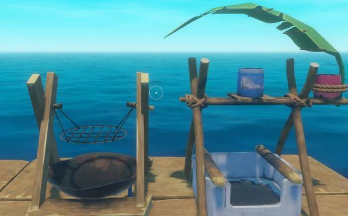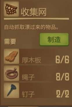 简易净水器:在建造菜单中找到简易净水器,用塑料和木板制作。净水器可以将海水转化为饮用水。记得同时制作一个杯子,用于取水和喝水。