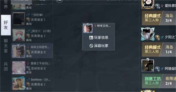 2:第二个方法是比较狠的,我们可以找到不想让他她看到我们在线的人,如图所示,显示这个框框之后我们点击屏蔽好友,这样ta就不会看到你在线了,同时你也不会收到她的邀请或者任何的信息;