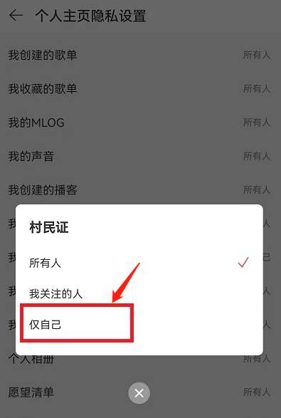 网易云音乐村民证无法直接取消,但是用户们可以设置仅自己可见进行隐藏,具体方法如下: