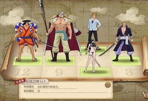 阵型的选用方面,因为我们要尽量让更多人与藤虎同一条直线,所以优先考虑的就是阵型中间有3人的那种。5级阵的蔑视;4级的勇者、元素、进击;2级的狂怒;1级的拼、出击都可以考虑使用。