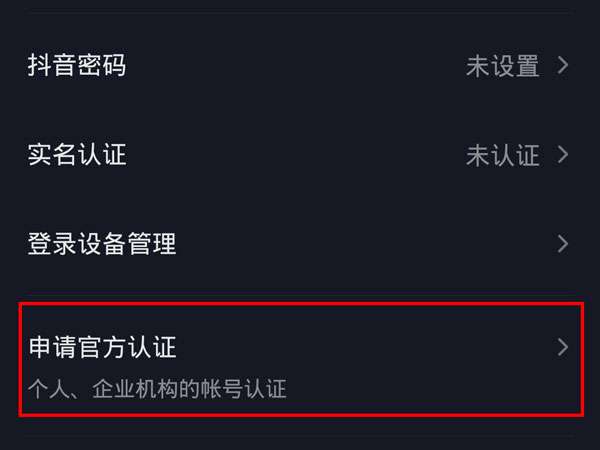 2、选择【申请官方认证】。