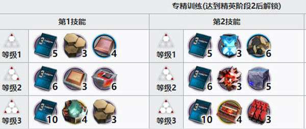 5:技能专精,【双端导流】专精一:技巧概要·卷三*5、提纯源岩*3、研磨石*4,专精二:技巧概要·卷三*6、五水研磨石*3、白马醇*6,专精三:技巧概要·卷三*10、晶体电子单元*4、提纯源岩*3【星束交汇】专精一:技巧概要·卷三*5、聚合凝胶*3、固源岩组*6,专精二:技巧概要·卷三*6、RMA70-24*3、三水锰矿*5,专精三:技巧概要·卷三*10、双极纳米片*4、改量装置*36:模组材料【未组装的钟表】,1级:模组数据块*2、白马醇*3、龙门币*4W,2级:模组数据块*2、数据增补条*20、晶体电路*4、龙门币*5W,3级:模组数据块*2、数据增补仪*8、精炼溶剂*5、龙门币*6W。