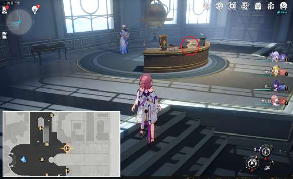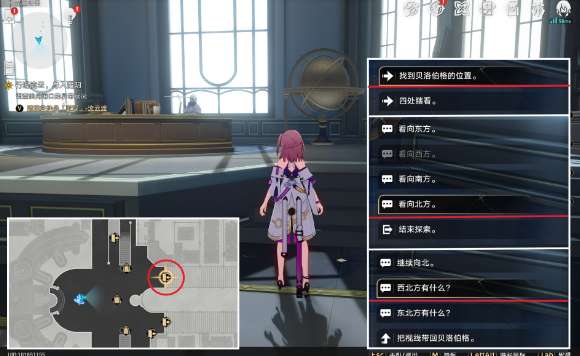 9、之后调查办公桌旁的地球仪,选择:找到贝洛伯格,看向北方,西北方有什么,就能找到地图上的帕姆,获得成就和20冬城盾。