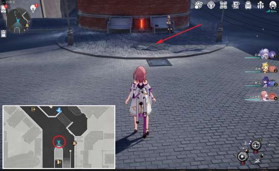 5、前往下图的位置,踩在井盖上就能调查发光点,完成后将获得20冬城盾。