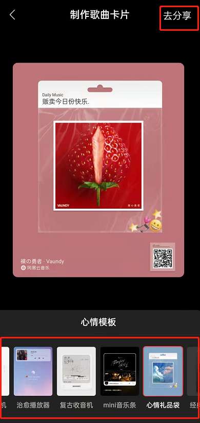3、选择一种心情模板,点击右上角分享。
