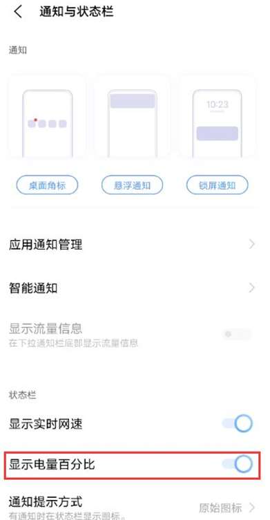 2、开启显示电量百分比右侧开关。