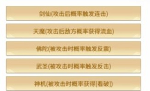 2、选择不同的职业,会拥有不同的特殊效果使用。剑仙有概率会触发连续攻击也就是攻击两次,天魔攻击后有一定概率让对方进入出血状态、佛陀挨打时有概率进入反震效果,武圣挨打时概率反击;神机被打时概率发动看破效果。