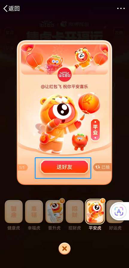 3、进入活动后点击想要送出的虎卡。