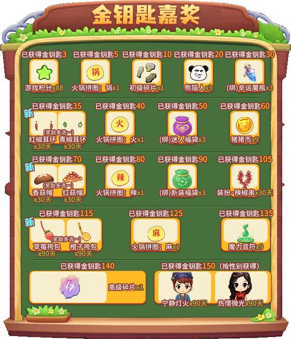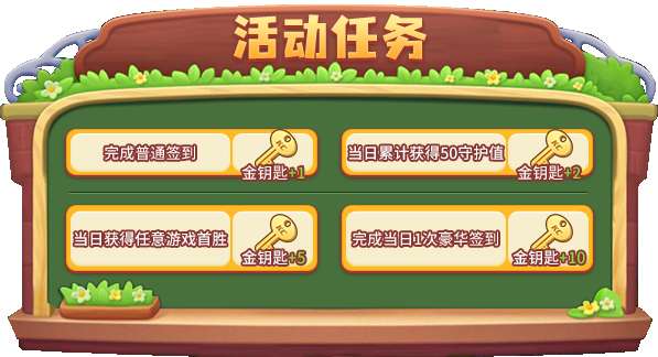 活动期间,完成指定任务,积攒“金钥匙”,领取活动奖励。