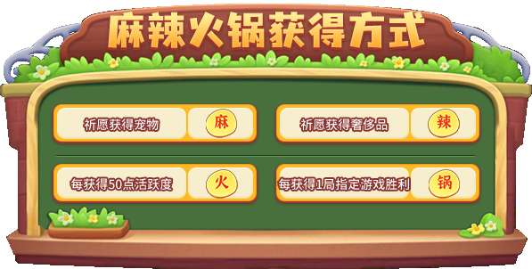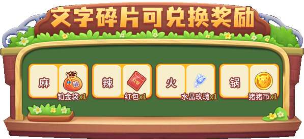 活动期间,完成指定集字任务,就能够收集“麻辣火锅”四个文字碎片!