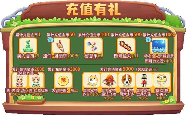 活动期间,充值金币达到要求,即可领取对应奖励!