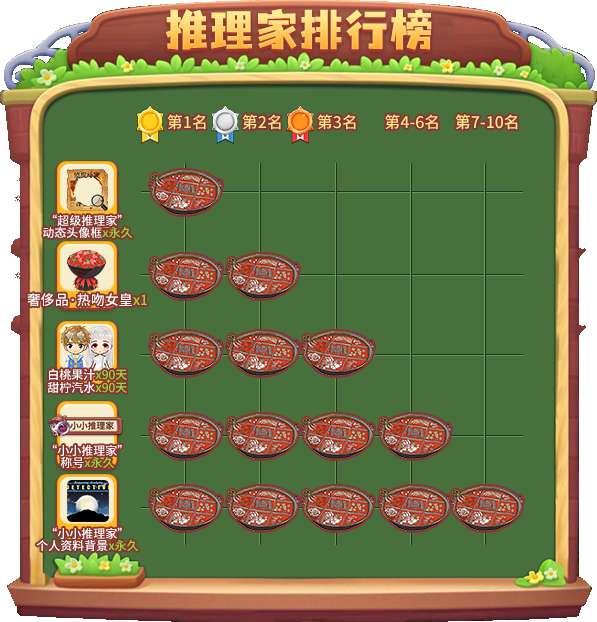 在活动结束后,为推理家排行榜上前10名玩家发放特别礼物!