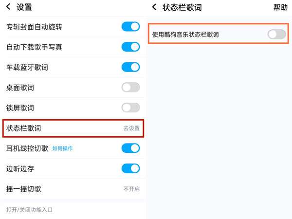 那么以上就是酷狗音乐取消歌词状态栏流程介绍,非常感谢大家的阅读!希望这篇教程解答能对各位小伙伴玩家们有所帮助。更多相关软件教程请关注十大评测网。