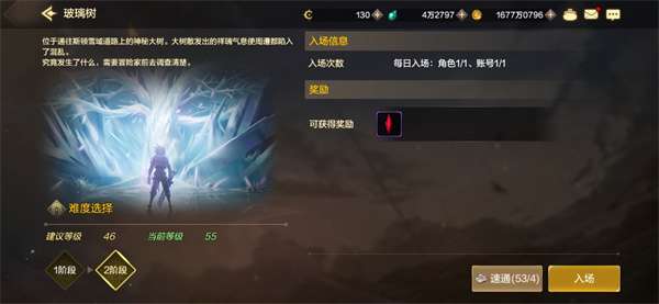 产出奖励为魔力结晶,养成魔力强化系统的时候需要用到。这个副本的挑战难度不高,46级时开启2阶段难度。