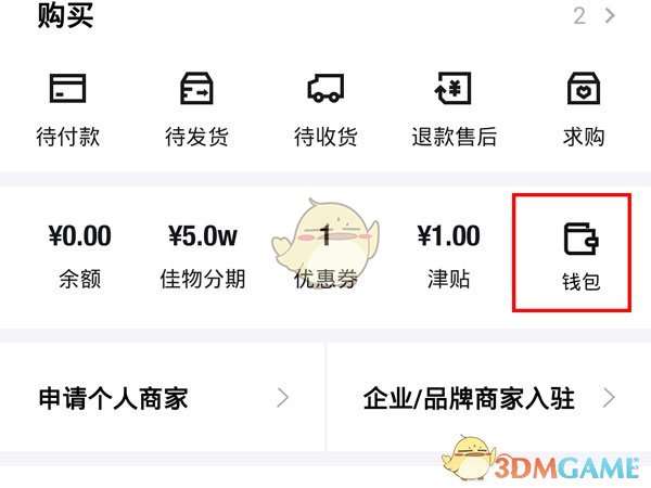 1、打开得物app,点击【我】,点击【钱包】。