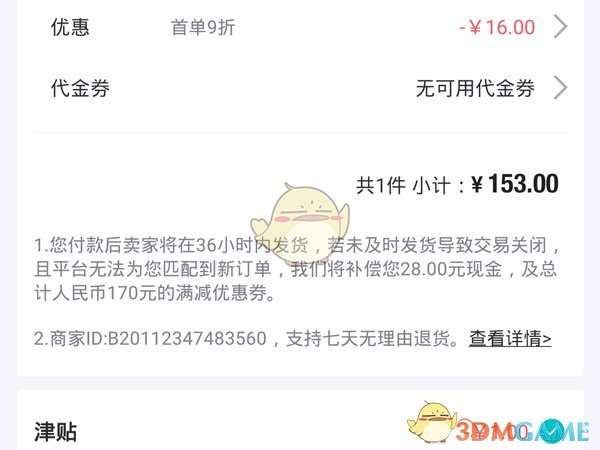 4、得物使用优惠券、红包、津贴可以在确认订单页面勾选使用,在收银台页面选择得币付款。