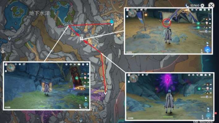 1线,来到地下水泽的底部,向西南方向走,可以看到一面墙,它和别的墙...好像也没什么不同,总之用双手剑或者岩元素攻击击碎即可