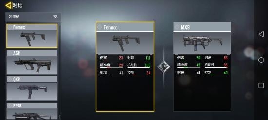 fennec 是无配件在冲锋枪步枪中TTK最高(16米内全打胸部或以上)的一把冲锋枪(约为216ms)但是他极高的后座和极差的精准度对新手来说极不友好 而且mx9(无配件)只比fennec的射速和机动性差了些 虽然只差了这两个但是 冲锋枪主要 要在意的是伤害和射速 所以在无配件的情况下fennec 是可以完胜mx9的