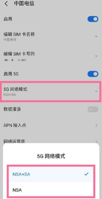 3、点击5G网络模式后,选择您需要的网络模式即可。