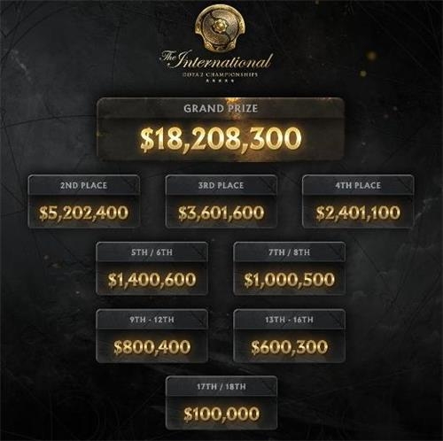 2、冠军可以获得总奖金的45.5%,大约在1820W美金(约1.1亿RMB)。同时,其他队伍则由不同程度的递减。并且,TI10冠军奖金比TI9冠军奖金高260万美金(其中,TI9冠军奖金为1560W美金);