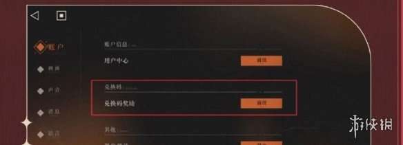 2、接着点击设置,找到左侧的账户后,在账户页面带点击兑换码后面的前往。