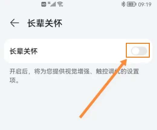 4、开启长辈关怀功能即可。