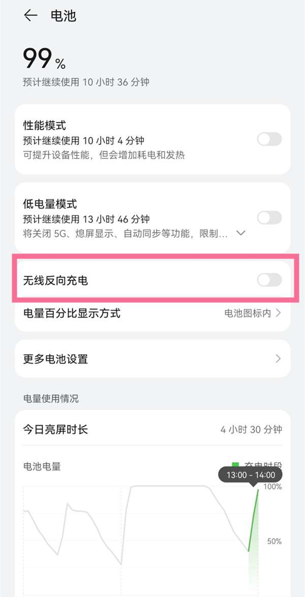 2、找到无线反向充电,将右边开关开启即可。