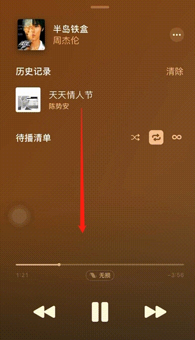 2、在此列表内可以选择循环顺序,然后按住向下滑,就可以找到历史记录。