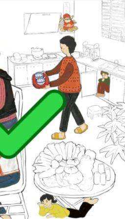 1、这一关我们需要在黑白线条画中,火锅边找到15个人
