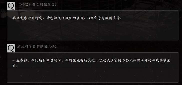 A:一直在招。相比项目刚启动时,招聘重点有所变化。欢迎关注官网与各大招聘网站的游戏科学主页。