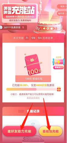 3、选择【邀好友助力充能】或者【蓄能池充能】,充能达到一定数值后,即可领取红包。